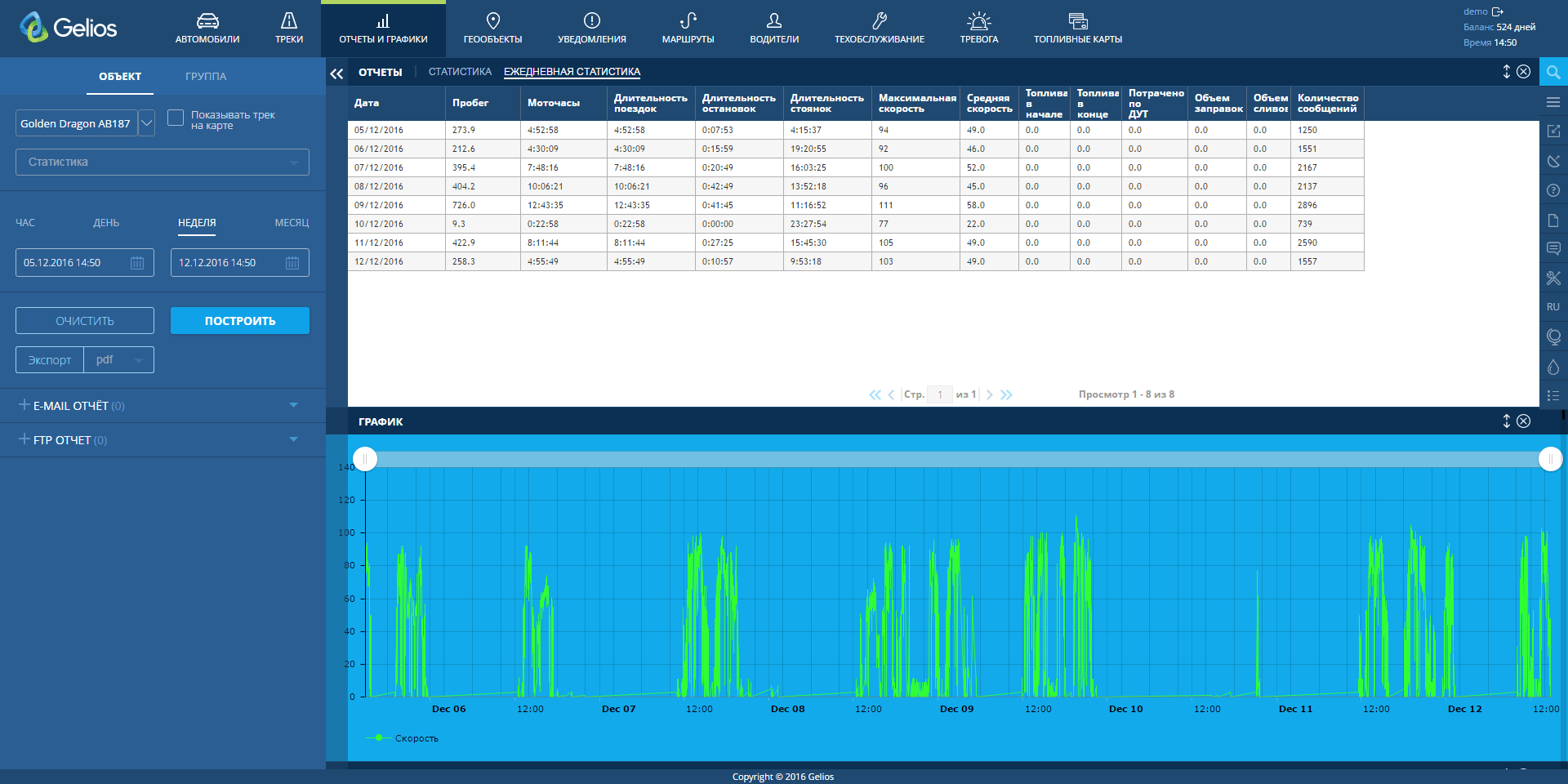 Su Gelios sistema jūs galite įvertinti transporto priemonės eksploatacijos kokybę nuo pirmos darbuotojo darbo dienos. Vairavimo kokybės kontrolė leidžia sumažinti avarinių situacijų tikimybę, užtikrinti krovinio saugą, sumažinti transporto priemonės susidėvėjimą ir sumažinti kuro sąnaudas.